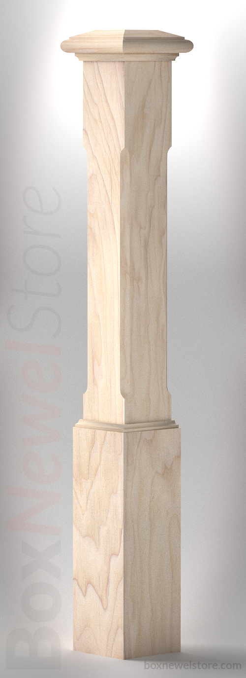 Box Newel Store Classic Poplar Box Newel, SFI Classic Cap with Cove, Chamfor Panels, Loose Basewrap with Cove