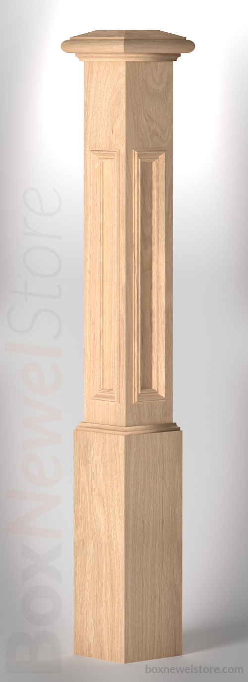 Box Newel Store Classic White Oak Box Newel, SFI Classic Cap with Cove, Lower Recessed Panels with Panel Cap, Loose Basewrap with Cove