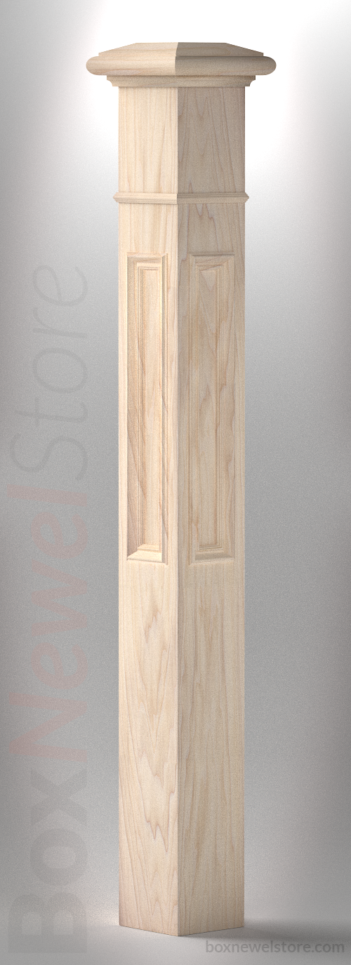 Box Newel Store Classic Paint Grade Box Newel, SFI Classic Cap with Cove, Lower Recessed Panels with Panel Cap, Pencil Mold Trimband