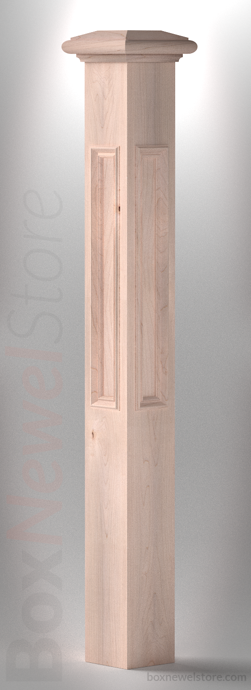 Box Newel Store Classic Soft Maple Box Newel, SFI Classic Cap with Cove, Lower Recessed Panels with Panel Cap