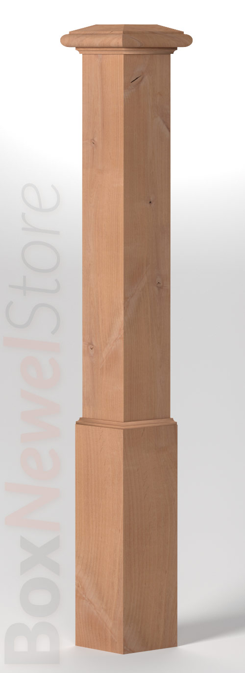 Box Newel Store Classic Knotty Alder Box Newel, SFI Classic Cap with Cove, Loose Basewrap with Cove
