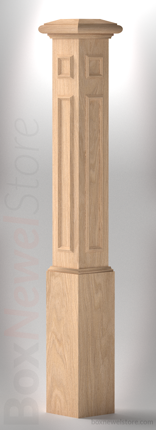 Box Newel Store Classic White Oak Box Newel, SFI Classic Cap with Cove, Upper-Lower Planton Panels, Loose Basewrap with Cove