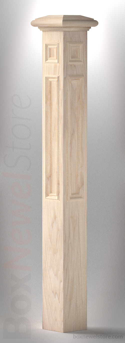 Box Newel Store Classic Poplar Box Newel, SFI Classic Cap with Cove, Upper-Lower Recessed Panels with Panel Cap