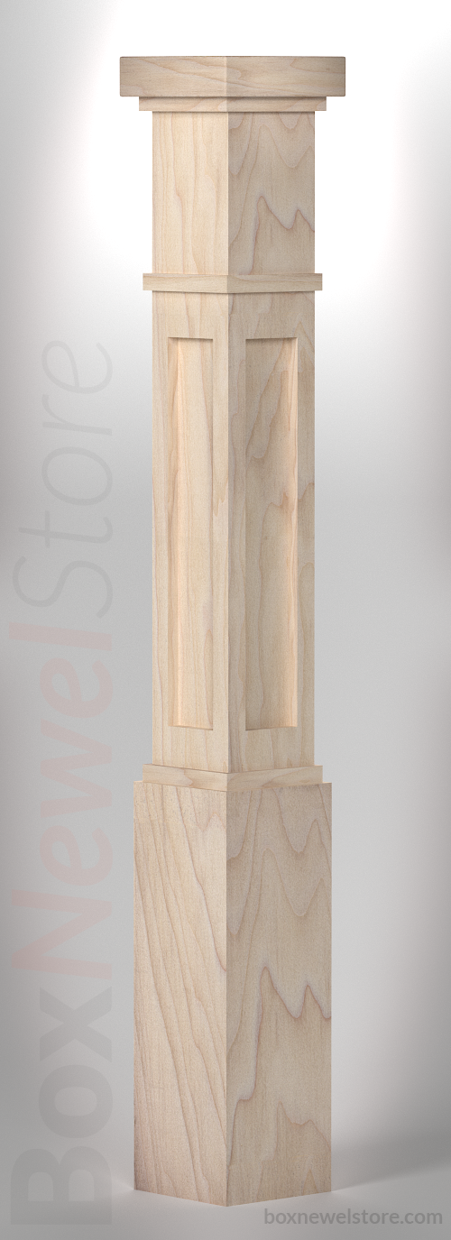 Box Newel Store Craftsman Poplar Box Newel, SFI Craftsman Cap with Square Trim, Craftsman Lower Recessed Panels, Craftsman Trimband, Loose Basewrap with Craftsman Trim