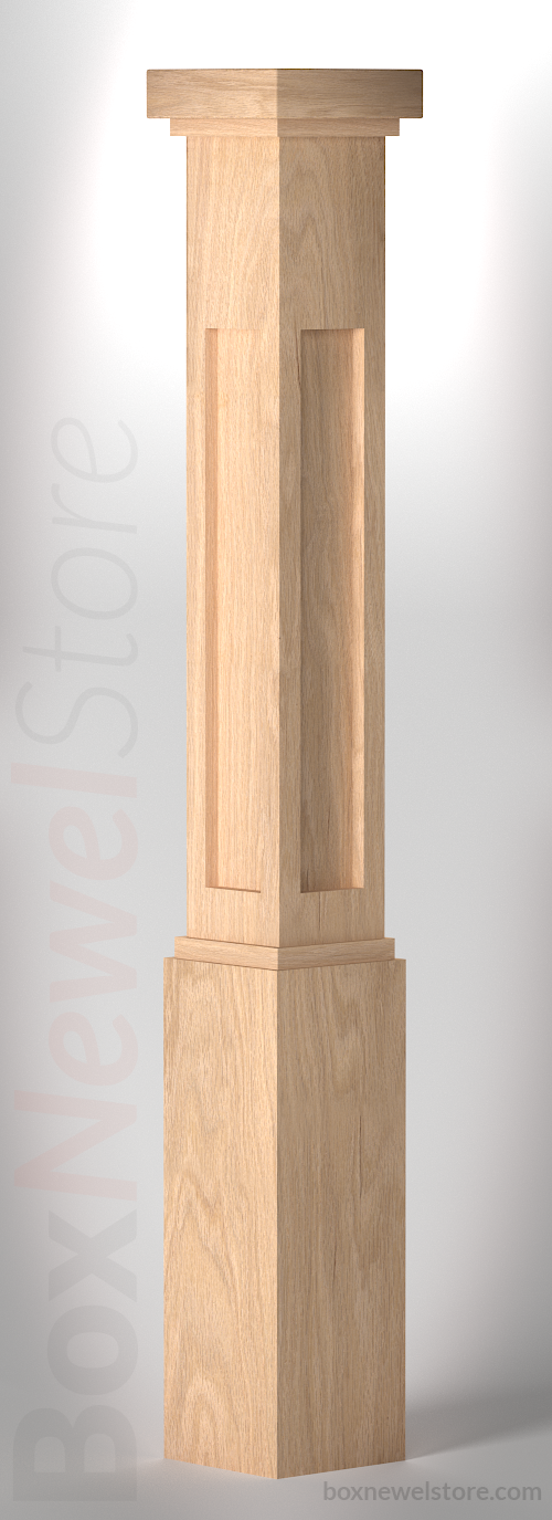Box Newel Store Craftsman White Oak Box Newel, SFI Craftsman Cap with Square Trim, Craftsman Lower Recessed Panels, Loose Basewrap with Craftsman Trim
