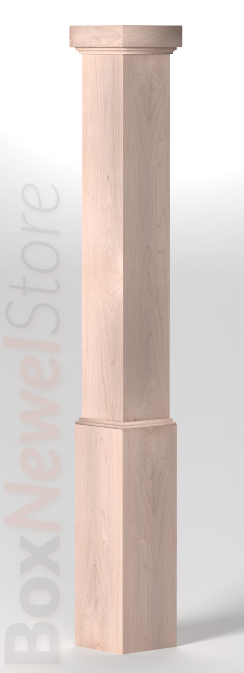 Box Newel Store Craftsman Soft Maple Box Newel, SFI Craftsman Cap with cove, Loose Basewrap with Cove