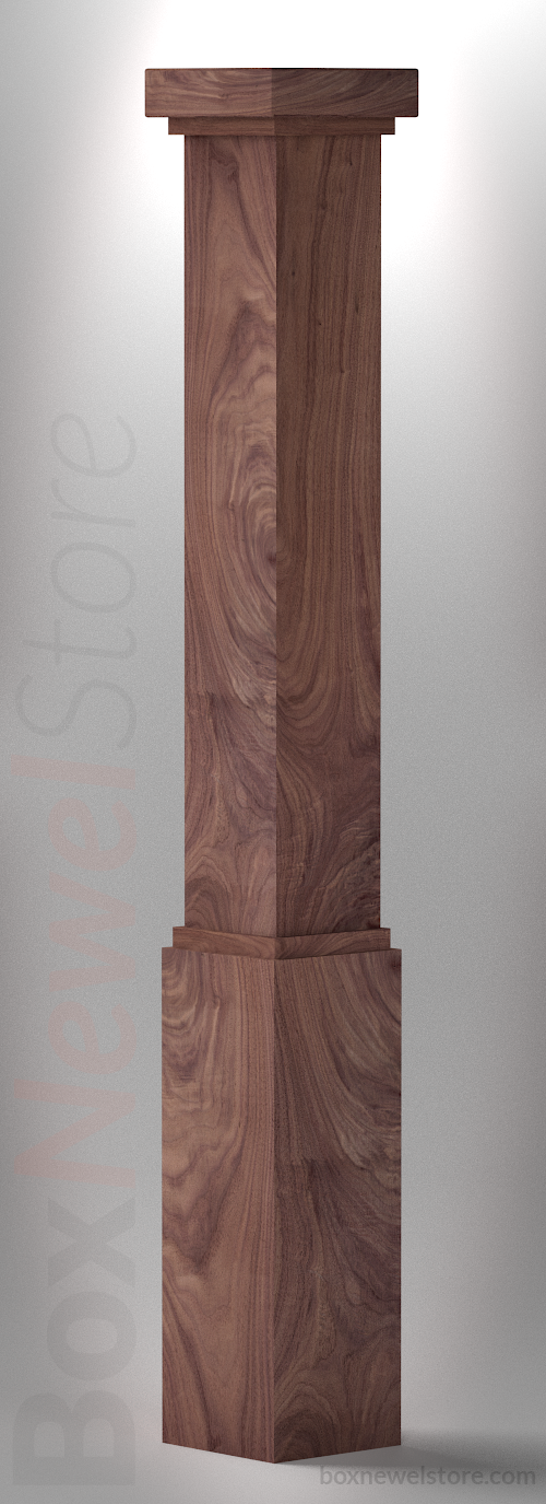 Box Newel Store Craftsman Walnut Box Newel, SFI Craftsman Cap with cove, Loose Basewrap with Cove