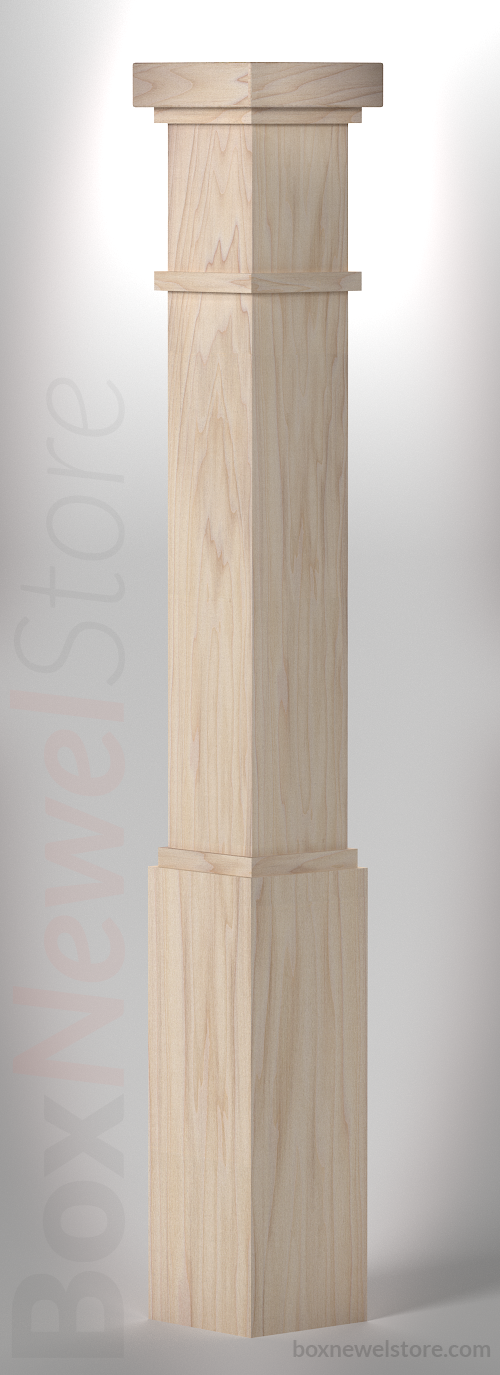 Box Newel Store Craftsman Poplar Box Newel, SFI Craftsman Cap with Square Trim, Craftsman Trimband, Loose Basewrap with Craftsman Trim