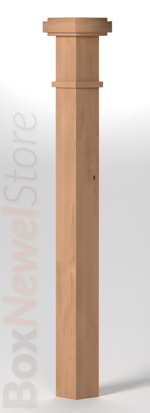 Box Newel Store Craftsman Clear Alder Box Newel, Tiered Craftsman with SquareTrim, Craftsman Trimband