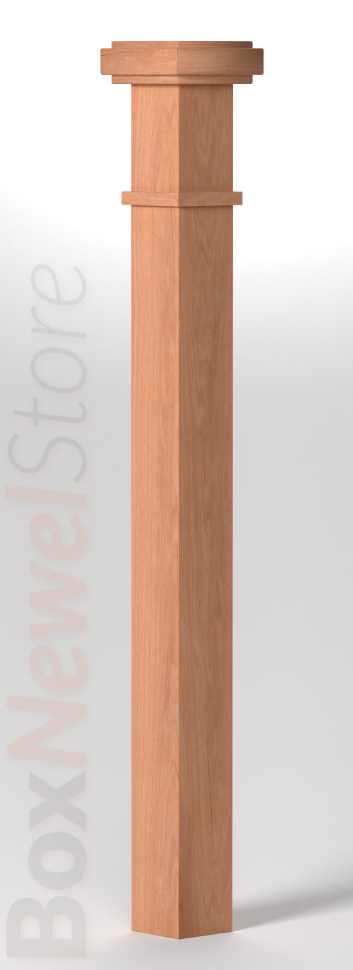 Box Newel Store Craftsman Red Oak Box Newel, Tiered Craftsman with SquareTrim, Craftsman Trimband